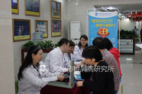 图为:郑州市银屑病研究所银屑病权威专家免费为患者义诊