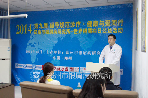 由郑州市银屑病研究所举办的主题为“倡导规范诊疗 健康与爱同行”的“第九届世界银屑病日公益活动”于10月29日在中国郑州圆满落幕。本次活动秉承2014银屑病规范诊疗高峰论坛的宗旨,将银屑病规范诊疗理念宣导给更多患者,实施并应用到临床治疗中从而确保患者能够真正康复。